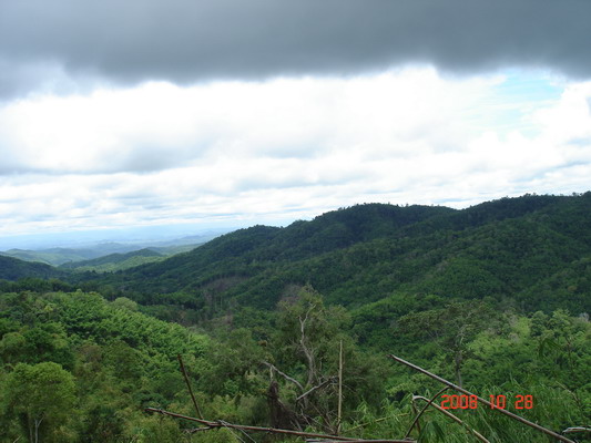 ซ้อนท้ายมอไซด์ไป..เส้นทางมันมหัศจรรย์มาก..ต้องพันโซ่..กลัวไม้ไผ่เสียบตา แทงขา..ต้องคอยหลบให้ดีขึ้นไปดอยที่สูงสุดๆ..เป็นเขตจังหวัดแพร่ถ่ายรูปปลงมายังดอยข้างล่างประมาณดอยที่เราเคยไปพักกันทริปชิมผลไม้