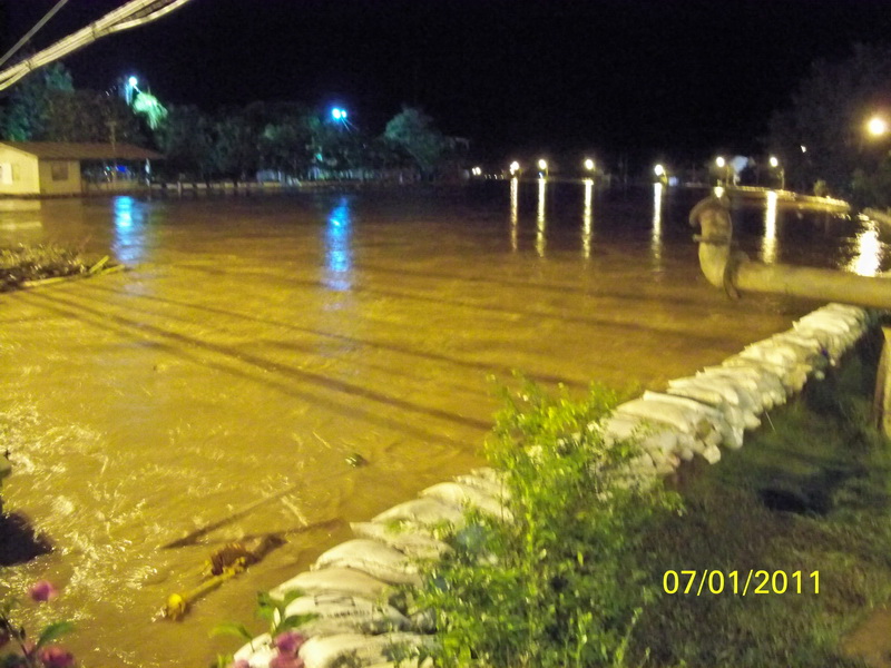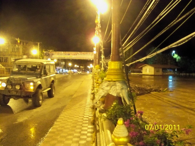 แม่น้ำ(คลอง)ยมตลิ่งต้องเอากระสอบทรายซ้อนกั้น เพราะน้ำสูงกว่าขอบตลิ่งมาก กลัวจะเอาไม่อยู่จังเลยครับ