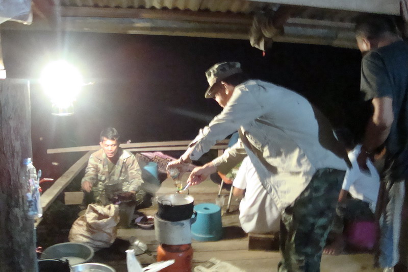 อากาศเย็นเอาการ จะกางเต้นท์ที่โล่งก็กลัวฝนลง เลยเปลี่ยมากางมุ้งใต้ถุนบ้าน (ตูบ)