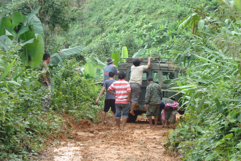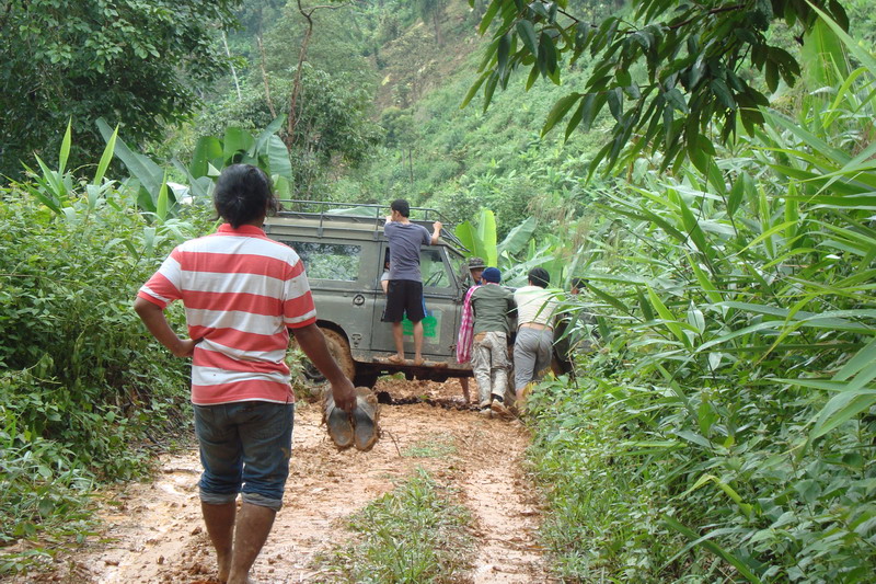 ตอนนี้ช่วยกันดันชิดขอบทางเพื่อให้คันที่จะลากแซงขึ้นมา เอ้าช่วยกันหน่อย