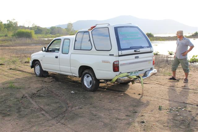 วิธีที่ช่วยให้ขึ้นง่ายอีกคือหาไม้กระดานรองล้อรถไว้