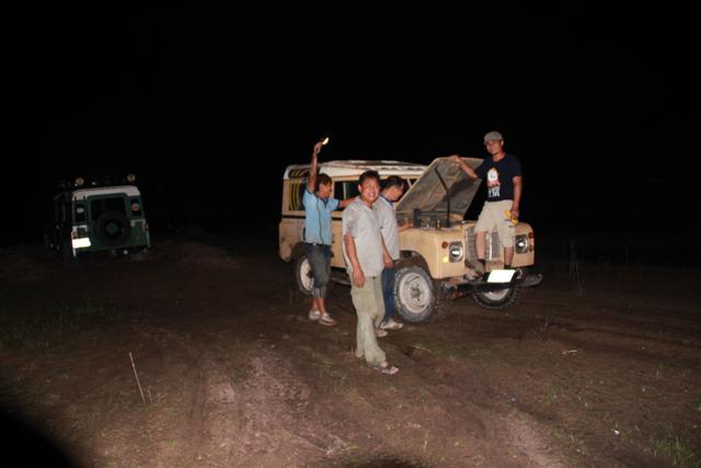 ขากลับ รถพี่ใหญ่เสือเมฆ ไฟหน้าดับทั้งสูงต่ำ ต้องใช้พริบไฟสูง กับสปอร์ทไลท์มือถือแบบคีบแบตชั่วคราว