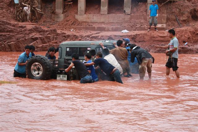 จะ 5 ทุ่มแล้วสงสัยคงจะเพีย..ชมภาพแล้วสงสัยงานเข้าแล้วมั้งหนุ่ม หนม.59 ระดับน้ำสูงเข้าเครื่องถ้าจะลุยมันก็ต้องเสี่ยง..ไหนๆจะเสี่ยงน่าจะเอาผ้าที่ต้านน้ำใส่ไว้หน้ารถตอนลงแล้วให้น้ำดันไว้จะติดหน้ารถแหวกน้ำออก รถก็ต้องความเร็วในระดับพอดี..แสดงว่าไม่ได้ดูทริปทุ่งใหญ่ที่ หนม.69 ทำไว้ละซิที่พอทำครั้งเดียวแล้วก็ไม่ทำอีกเลย...สู้ๆๆ..ไม่ลองไม่รู้..หมอเรียนหมอรู้นี่มันใบหูเด็ก...เราลูกพญาปาดเมื่อยามทุกข์ยากเราไม่ทิ้งกัน..ต้องขอชมทุกคนที่พยายามที่จะสู้กับอุปสรรคเพื่อจะได้นำสิ่งของอุปโภค บริโภค ที่จำเป็นไปให้กับพี่น้องที่รออยู่ข้างใน..อีกหลายชีวิต