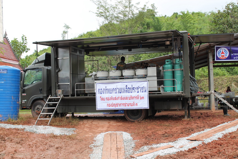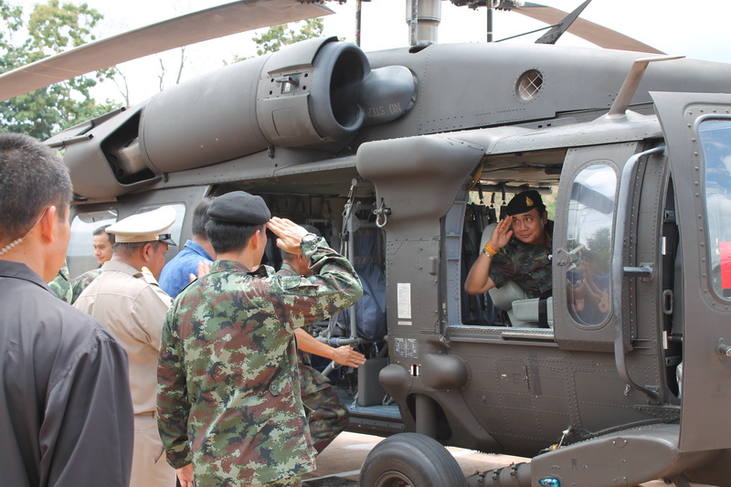 เดินตรวจเยี่ยม ผู้ประสบภัยฯ และกำลังพลที่ปฏิบัติงานในพื้นที่เสร็จ เตรียมกลับไปยังสนาม ร.ร.
