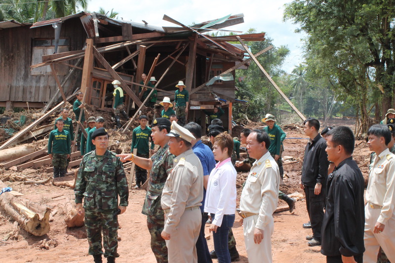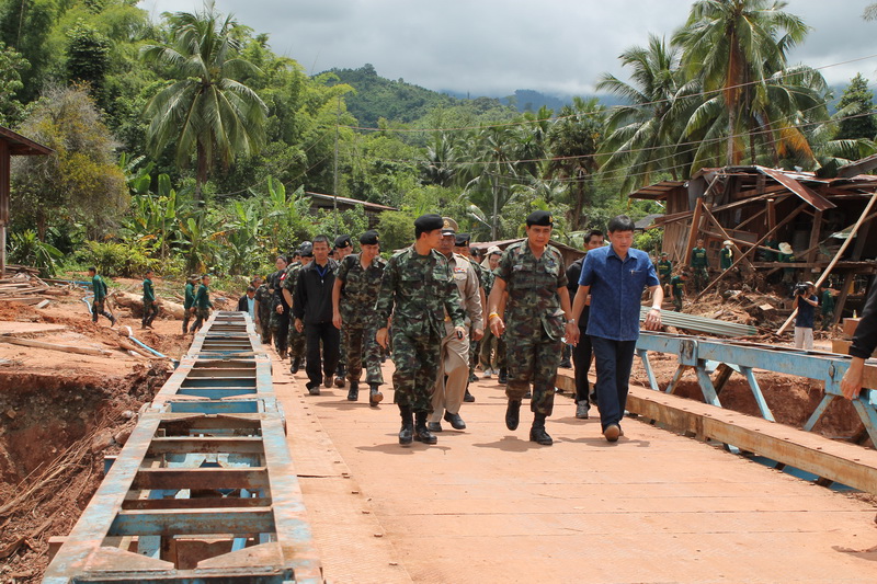 ออกไปเดินดูพื้นที่บ้านที่โดนน้ำพังเสียหายและกำลังพล..ช่วยรื้อถอน..