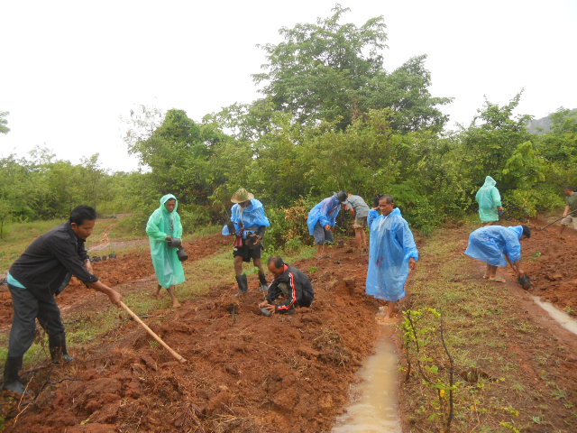 เย็นมาไปเอากล้าไม้มะค่ามาปลุกเสริมที่ว่างหลังโรงเรียนต่อ