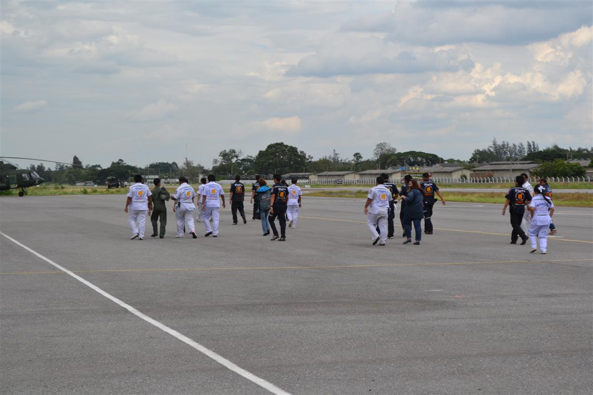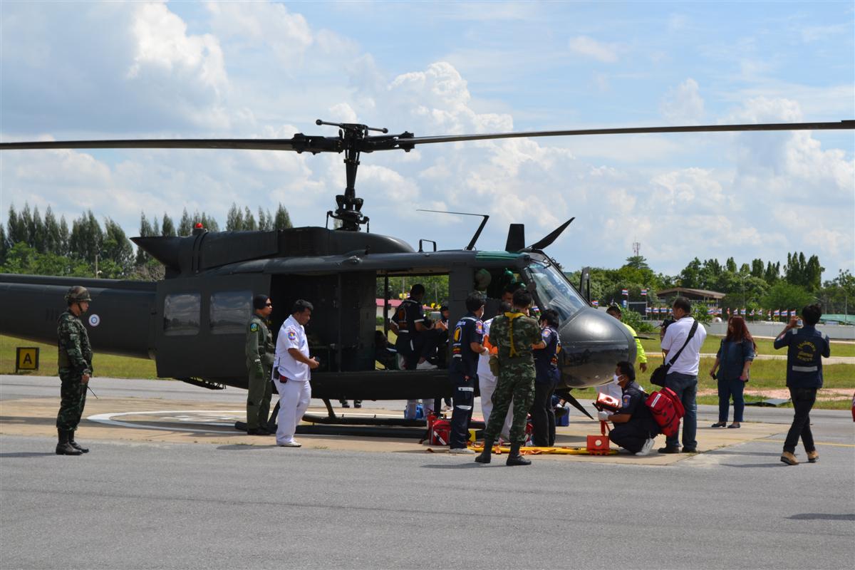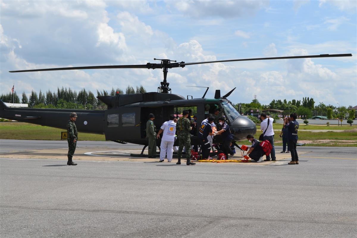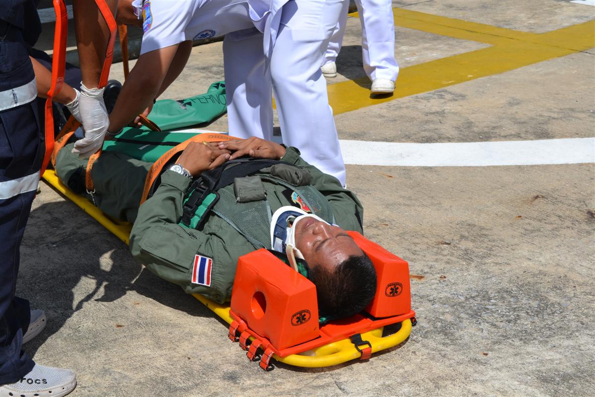 ก็เริ่มแผนฝึกช่วยเหลือ และ ลำเลียงผู้บาดเจ็บลงจากเครื่อง