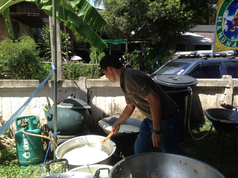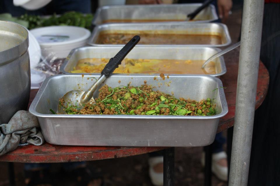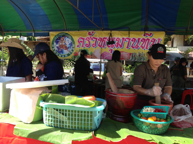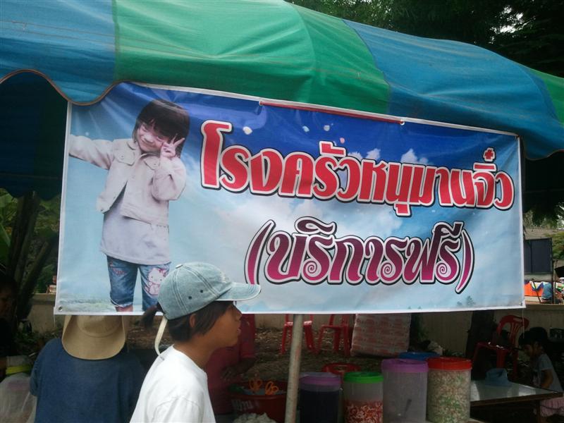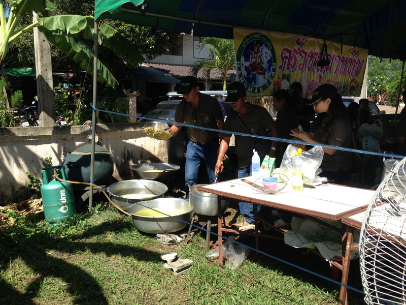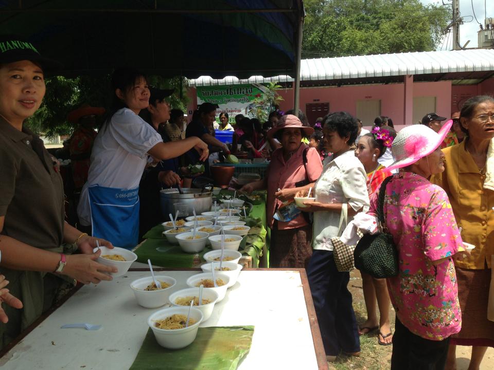 """"ผ่านการแห่ได้เวลาตั้งโรงครัว....ส้มตำ ลูกชิ้น ไส้กลอกทอด ข้าวราดแกงสารพัดอย่าง น้ำดื่ม ผัดหมี่.........