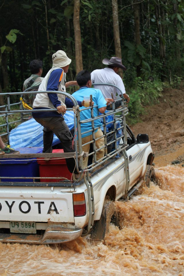 จากป่าออกมาได้ เมื่อถึงถนนกลับเจอน้ำป่าลงจากเขาข้ามถนนทั้งสูงและแรงเสี่ยงกับการถูกพัดตกแม่น้ำ...รอไปก่อน...(๑ช.ม)..แล้วส่งประธานนำหน้า...เพราะมีวิ้นตกลงไป ค่อยวิ้นขึ้น....