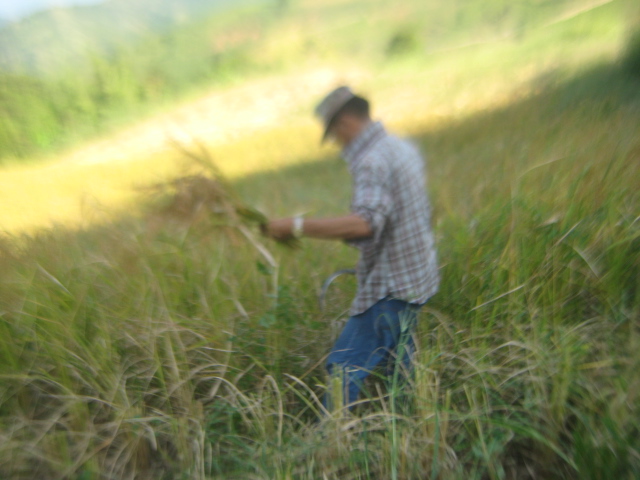 อ้าว..ได้การเจอเจ้าของไรข้าวแล้ว กำลังเกี่ยวข้าวอยู่สองคน