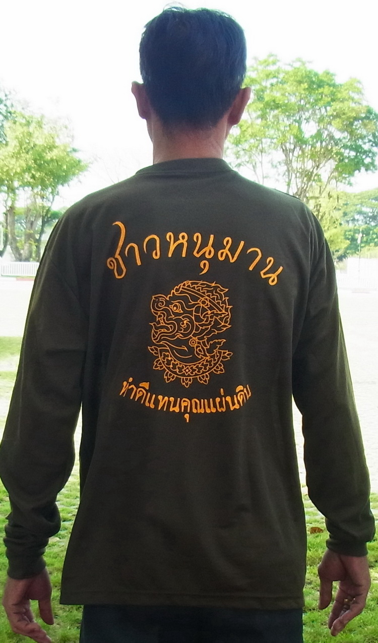 เสื้อสำหรับชาวหนุมาน มีสองสี เขียวทหาร ฟรีไซท์ มี 50 ตัว แขนสั้นและ แขนยาว อย่างละ 25 ตัว สำหรับชาวหนุมาน หุ่นแมนๆ และพิเศษ สำหรับ ชาวหนุมานหุ่น บิคไซท์ อย่างลุงรงค์ ลุงนิต พี่หมอ พี่ตุ้ย ฯสีเทา มีเพียง 5 ตัว เท่านั้น รับได้ก่อนขึ้นเขาค้อเช่นกัน