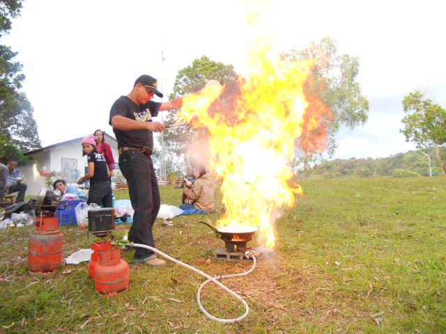 คนข้างๆวิ่งไปหาน้ำมาดับไฟ ส่วนคนทำยังยืนงงๆ ทำอะไรไม่ถูก