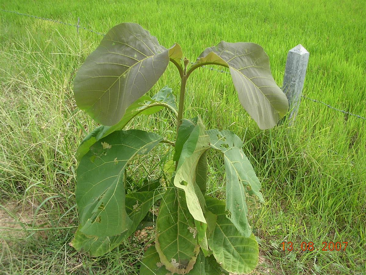 ต้นสักที่ปลูกไว้ แตกใบดูงามดี