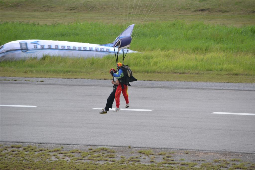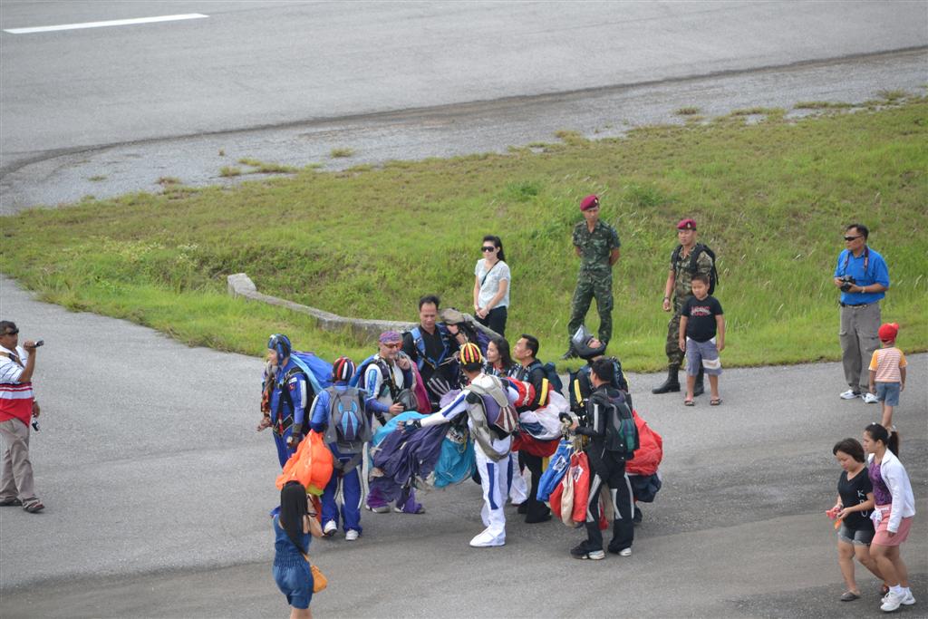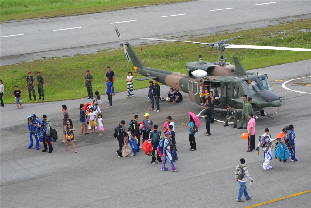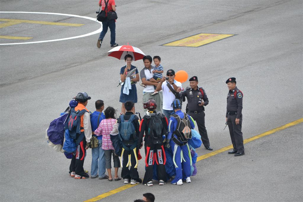 นักกระโดดร่ม..ทยอยเดินมารวมตัวกันที่ลานจอดเฮลิคอปเตอร์..