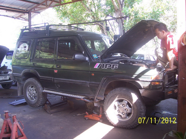 แวะไปดู รถของท่าน land alone มาแล้ว..กำลังซ่อม..อีกไม่นานก็กลับอุบลได้..