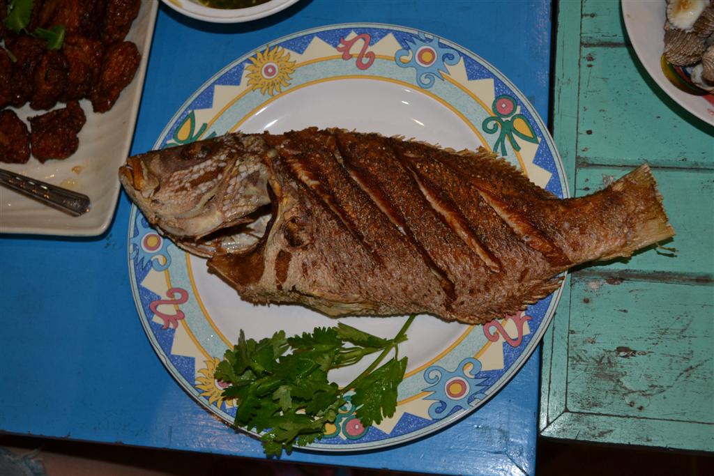 และ เมนูสุดท้ายของค่ำคืนนี้...ปลากระพงทอดน้ำปลา ครับ...
