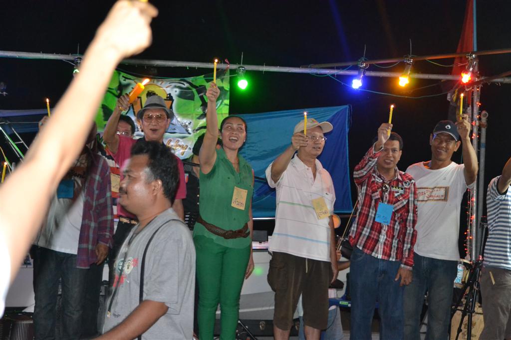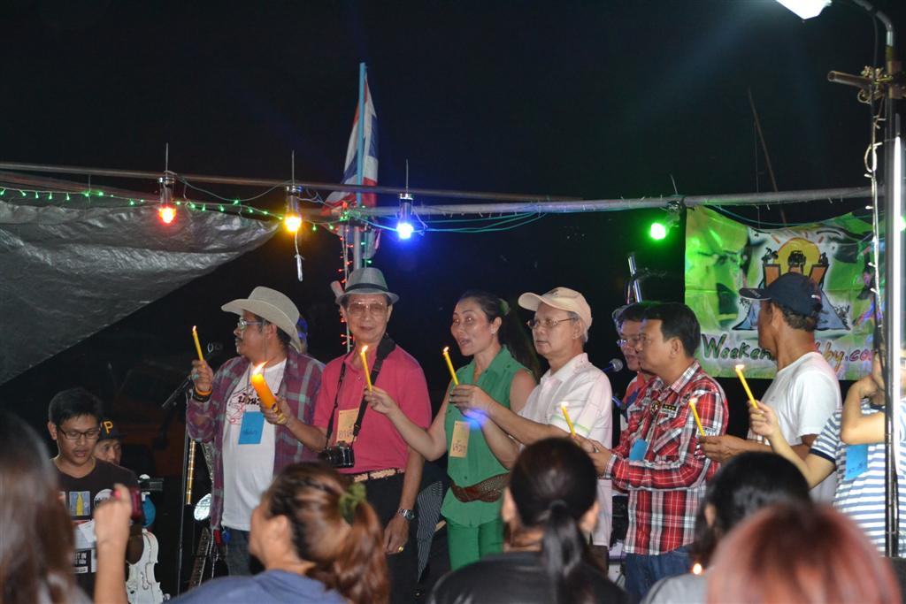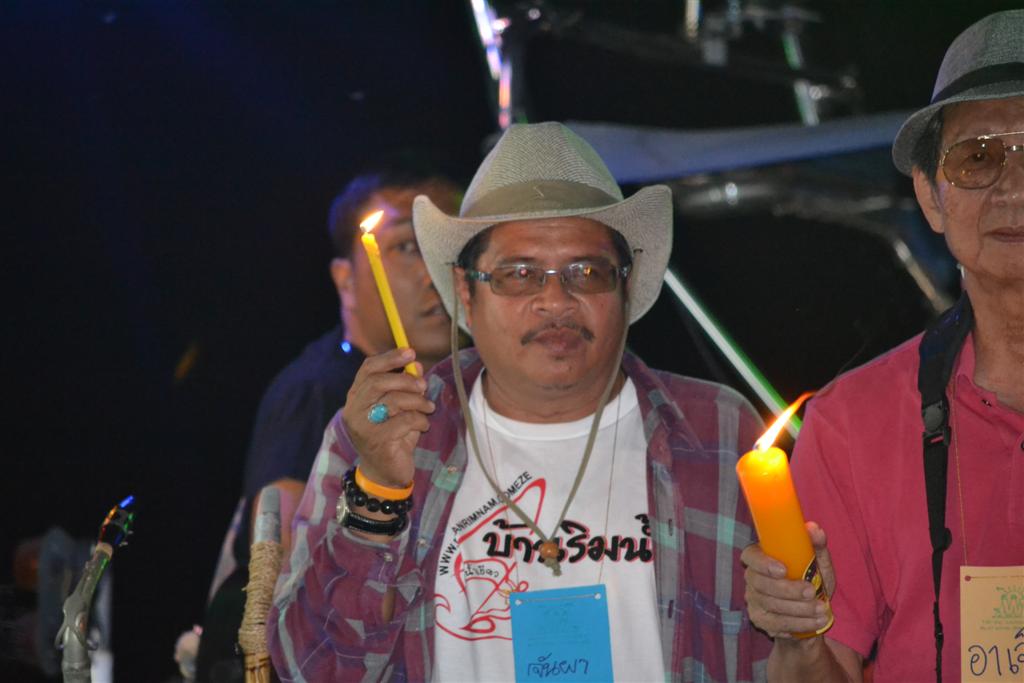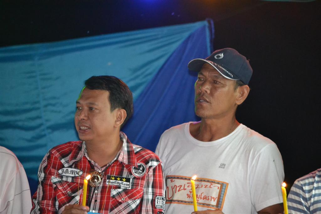 แกนนำขึ้นบนเวที...จุดเทียน....ร้องเพลงสามัคคีชุมนุม...
