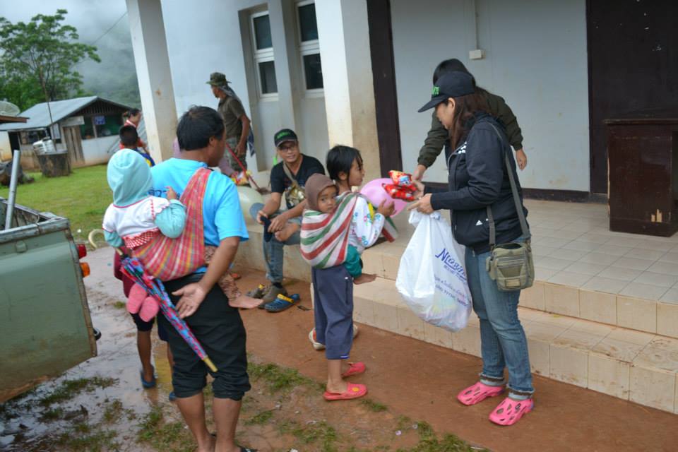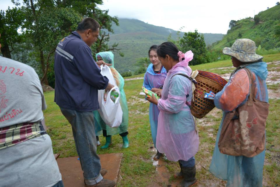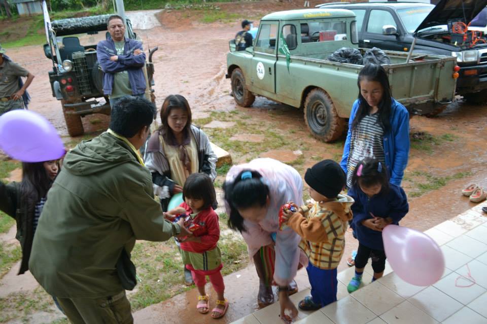 """เราบอกกล่าวชาวบ้านและเด็กๆออกมาเอาขนมที่เตรียมไปฝาก ได้กันทั่วหน้า อาจพอแก้สถานการที่ตกงานวันนี้ได้
