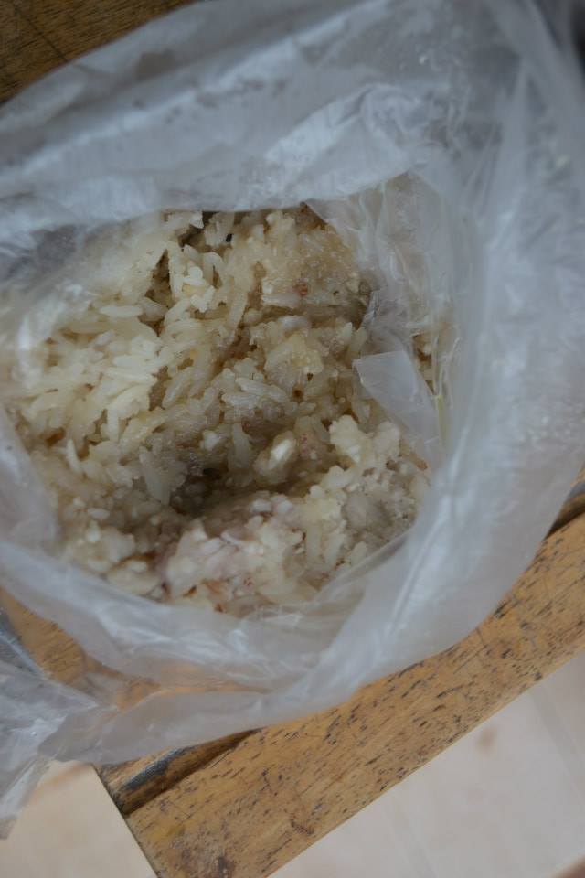 ชาวบ้านไม่ได้ไปทำงานเลยยกอาหารเที้ยงให้พวกเรา....ข้าวนึ่งผสมเผือก
