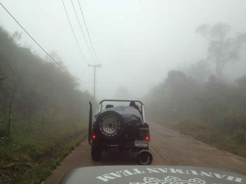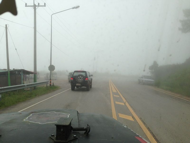"""ฝนยังตกปรอยๆ...รถชาวบ้านขึ้นมาไม่ได้แล้วพวกเราละ.....แถมมีหนึ่งคันยางแบนและไม่มียางอะไหล่.....หาเครื่องปั้มลมดู อาจไปได้
