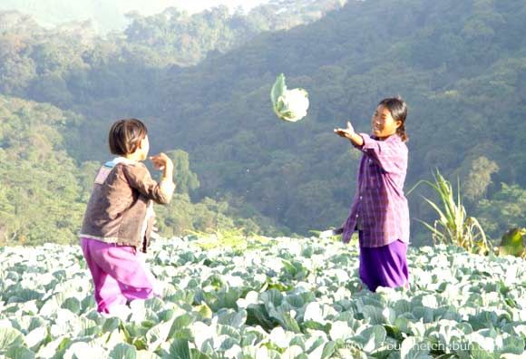 """"จากกลางคืน อุณหภูมิ ไม่เกิน ๑๘ องศา กำลังดี กระทั้งเช้าจัดเตรียมอาหาร....ชาวบ้านกลุ่มนี้และอีกหลายๆกลุ่ม ออกจากบ้านมายื่นรอรถรับส่งไปรับจ้างปลูกกะหล่ำให้ม้ง วันนี้ฝนตกหนักแต่เช้า รถหลายคันเข้ามารับไม่ได้....ขาดรายได้ไปหลายคน.....