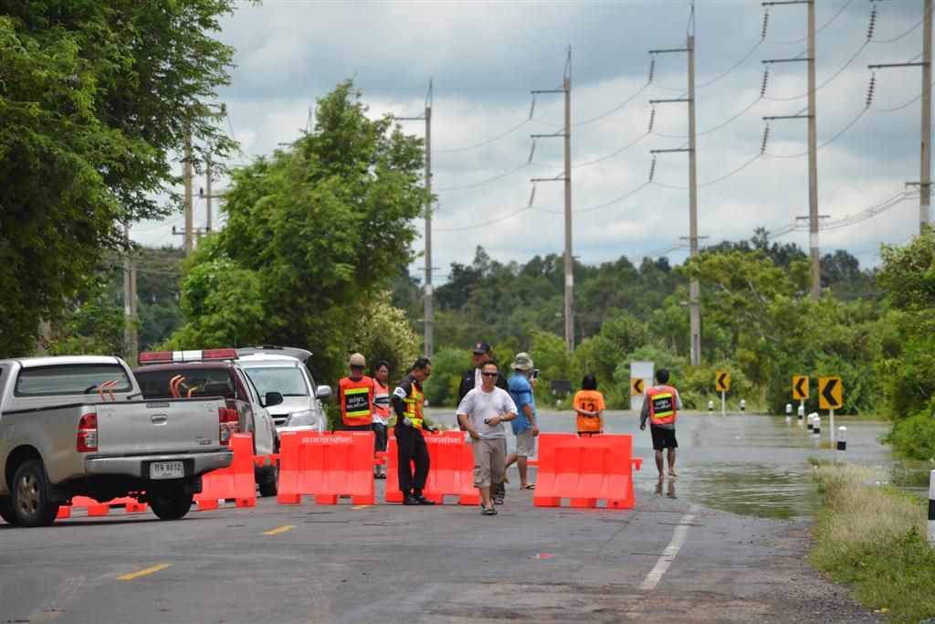 เจ้าหน้าที่ต้องปิดถนนชั่วคราว เพราะเกรงจะเกิดอันตรายแก่ผู้เดินทาง....