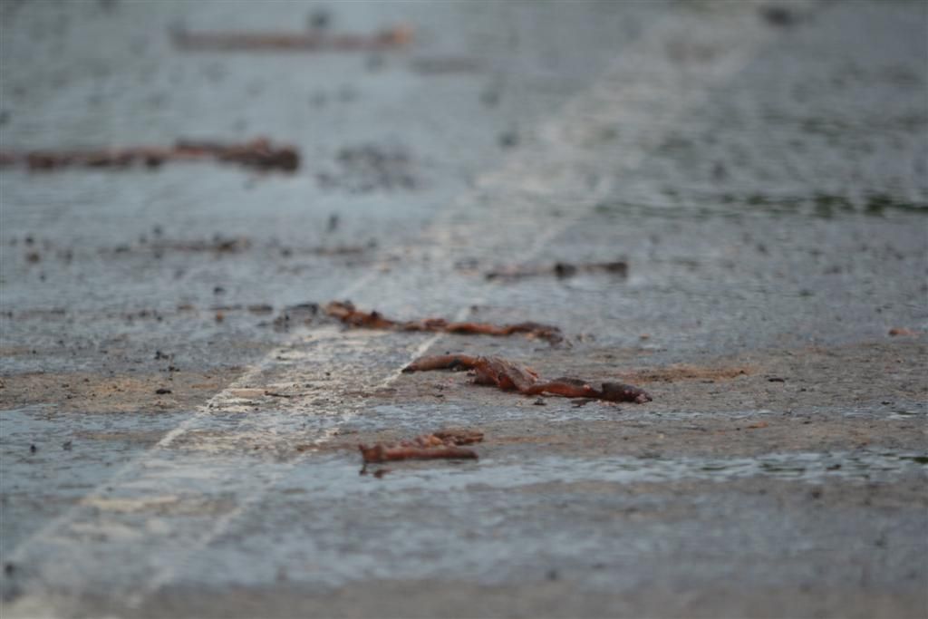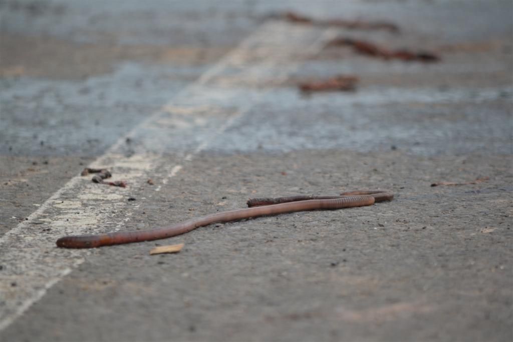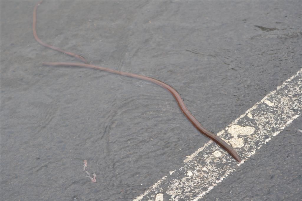 ใส้เดือนนับพันตัว หนีน้ำท่วมขึ้นมาบนถนน.....หวังจะเอาชีวิตรอดจากภัยน้ำท่วม....ตัวโตมากไม่เคยเห็นมาก่อน...