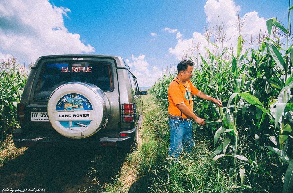 เกษตรกรผู้มั่งคั่ง ขับแลนด์โรเว่อร์ออกตรวจแปลงปลูกข้าวโพดเลี้ยงสัตว์