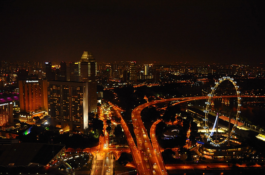 รูปเปิดนี่ ถ่ายจาก Marina Bay Sands Sky Park ลงไปที่ Singapore Flyer