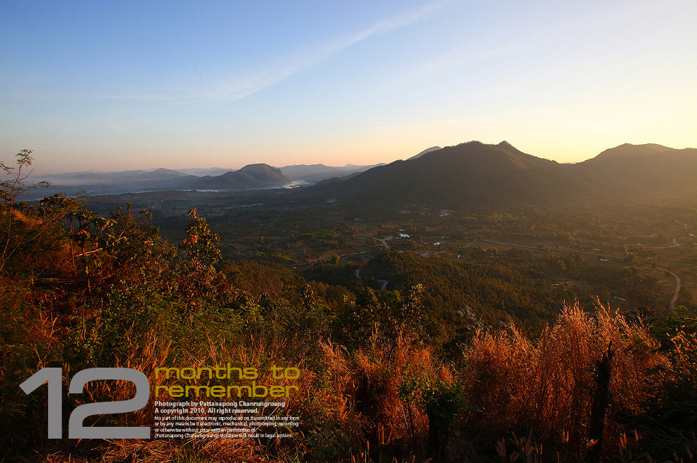 ภาพที่ 9 อันนี้เริ่มต้นปี 2011 มาอาทิตย์นึง ไม่รู้ละผมจะนับย้อนไปเป็นปีที่แล้วละกัน ก็อยากเอาลงนี่นา ภาพจากภูทอก เชียงคาน ขึ้นไปรอมันมา 3 เช้าไม่มีหมอกสักนิดส์...... เป็นสถานที่ๆไม่เป็นอย่างที่หวัง แต่พอมาถึงตอนนี้ก็รู้สึกดีที่ครั้งนึงเราได้มีโอกาสไปมาแล้วเหมือนกัน ใครจะไปรู้วันนี้ไม่ไป โอกาสหน้าจะมีโอกาสได้ไปหรือเปล่า จากที่เคยคิดว่าจะไม่กลับไปอีกแล้ว กลายเป็นต้องกลับไปแก้มือแล้วละ แต่...ในวงเล็บ (ขอตอนที่คนเลิกฮิตแล้วนะครับ) ถึงเวลานั้นมันอาจจะไม่สวยแล้ว คนไม่อยากมาเที่ยว ทำจนมันโทรมแล้ว มันยิ่งท้าทาย ผมจะถ่ายมันมาให้สวยให้ได้ครับ แค่คราวนี้ยังถ่ายมาไม่เหมือนชาวบ้านเค้าเลย สงสัยจริงๆว่ามันคือเชียงคานหรือเปล่าหว่า 555