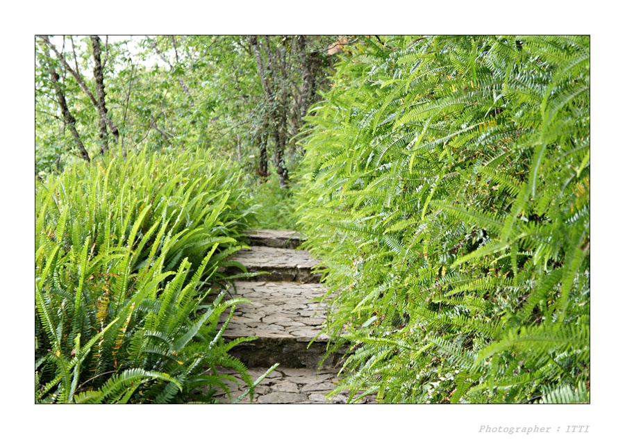ทางเดิน ปรกคลุมด้วยเฟินใบมะขาม