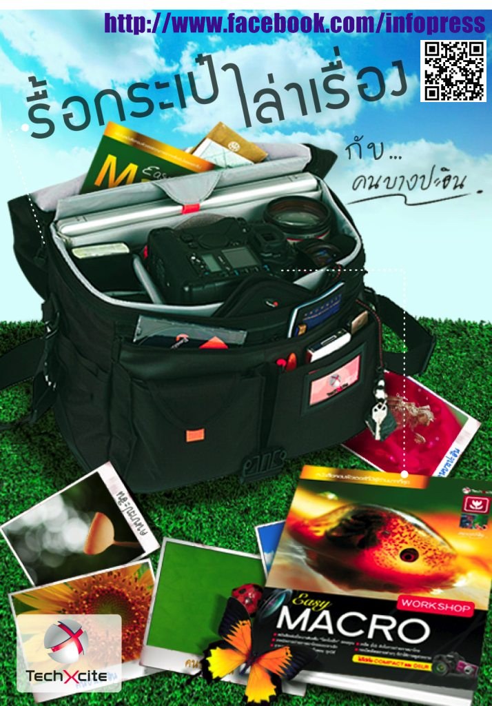 ด้วยผลงานการ ถ่ายภาพมาโครจนได้รับการยอมรับว่าเป็นช่างภาพมาโครฝีมือหาตัวจับยากคนหนึ่ง มาคราวนี้ สำนักพิมพ์อินโฟเพรสกรุ๊ปภูมิใจนำเสนอ กิจกรรมดีๆที่จะพาทุกท่านมาร่วมรื้อ ร่วมคุ้ย เปิดกระเป๋าของ คนบางปะอิน แบบที่ไม่เคยเปิดเผยที่ใดมาก่อน