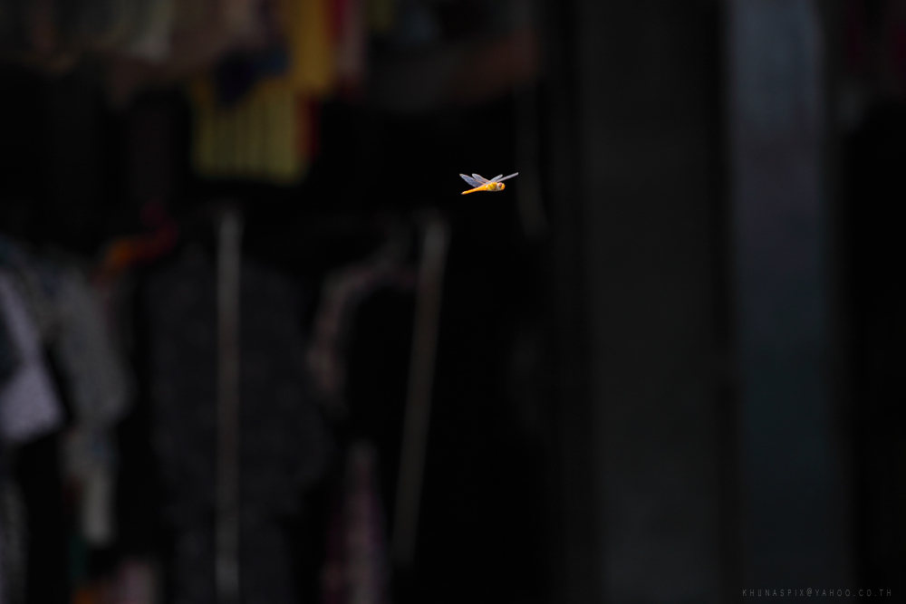 ถ่ายๆอยู่เจอแมลงปอบินไล่กินแมลงหวี่...เสียดายจริงๆ แมลงวี่ไม่ยอมมาเข้าเฟรม....... Manual focusing กะๆเอาแถวที่แมลงปอบิน แล้วก็อันเดอร์ 1-2/3 ให้ฉากหลังดำมืดเหลือแต่แมลงปอไ้่ว้ก็พอ