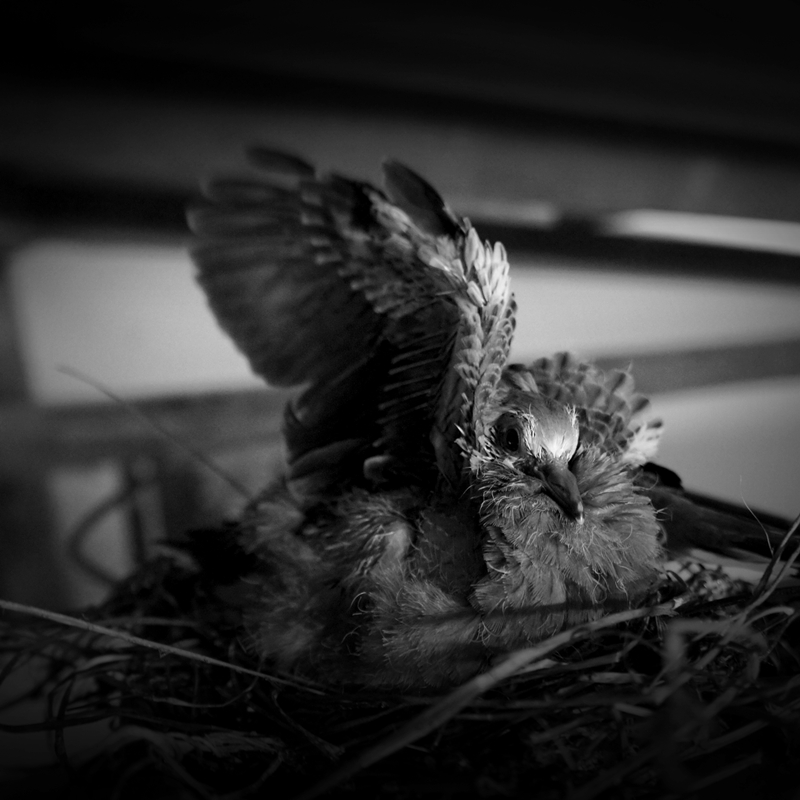 ผมเลยเปลี่ยนเป้าหมายใหม่ มาที่นกเขา ที่ทำรังในโรงรถ