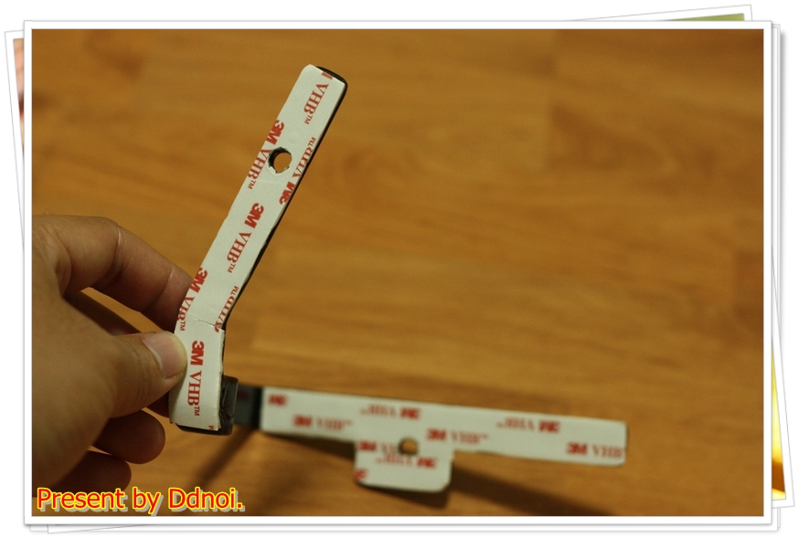 ต่อด้วยหากาว 2 หน้ามาติดเอาไว้.. กันขูดขีด.. แล้วก็เจาะรูสองรูตรงนี้..ตรงนั้น