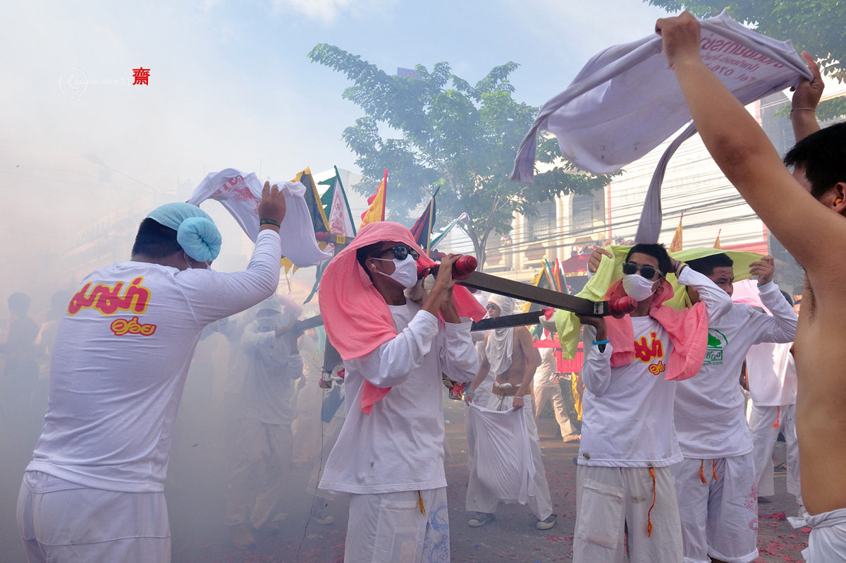 ในครั้งนั้นด้วยในช่วงระยะที่ชาวจีนกำลังประกอบพิธีเจี๊ยะฉ่าย (กินผัก) ที่ท่านผู้รู้ท่านหนึ่งซึ่งไม่ปรากฏนามเคยอาศัยอยู่ที่มณฑลกังไส (กังไส คือ เจียงซี้ของประเทศจีนในปัจจุบัน) ได้เดินทางมาประกอบอาชีพในทู ได้เห็นการประกอบพิธีเจี๊ยะฉ่ายของชาวจีนไม่ถูกต้องตามแบบฉบับของฉ้ายตึ้ง (ศาลเจ้าในมณฑลกังไส)