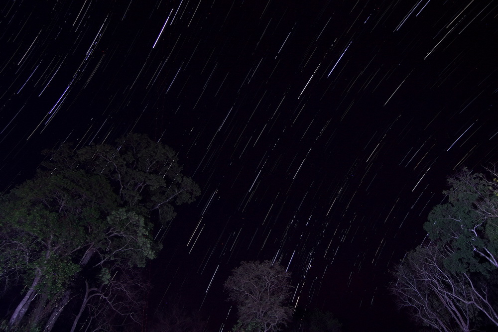 คือปกติในกล้องจะตั้งเวลาถ่ายภาพได้เพียง 30 วินาทีจะเห็นดาวเป็นจุดๆ แต่ครั้นจะกด B แช่ไว้ก็เกรงใจ Sensor และเดาแสงยาก จึงใช้การถ่ายภาพละ 30 วินาที ในเวลาสัก 1 - 3 ชั่วโมง โดยดันสายลั่นให้ค้าง ชัตเตอร์ ก็ทำงานไปเรื่อยๆ ก็จะตกประ 100 - 300 ภาพ ขึ้นอยู่กับว่าอยากได้ วงดวงดาวมากน้อยแค่ไหน หรือตามสภาพอากาศ