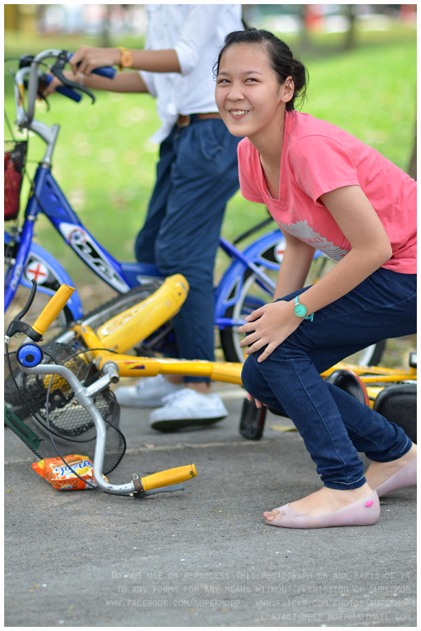 กำลังถ่ายภาพกันเพลิน ๆ ได้ยินเสียง...โครมมม....คือว่าน้องคนนี้เค้าขี่จักรยานมากับเพื่อนเป็นกลุ่ม เห็นพวกผมกำลังถ่ายภาพนางแบบอยู่ ก็หันมามองจนเพลิน ...สุดท้ายขี่รถชนเพื่อนกันเองซะงั้น ...ร้องอูยย ๆ ๆ แต่ก็ยังไม่วายมองนางแบบตาไม่กระพริบ 5555