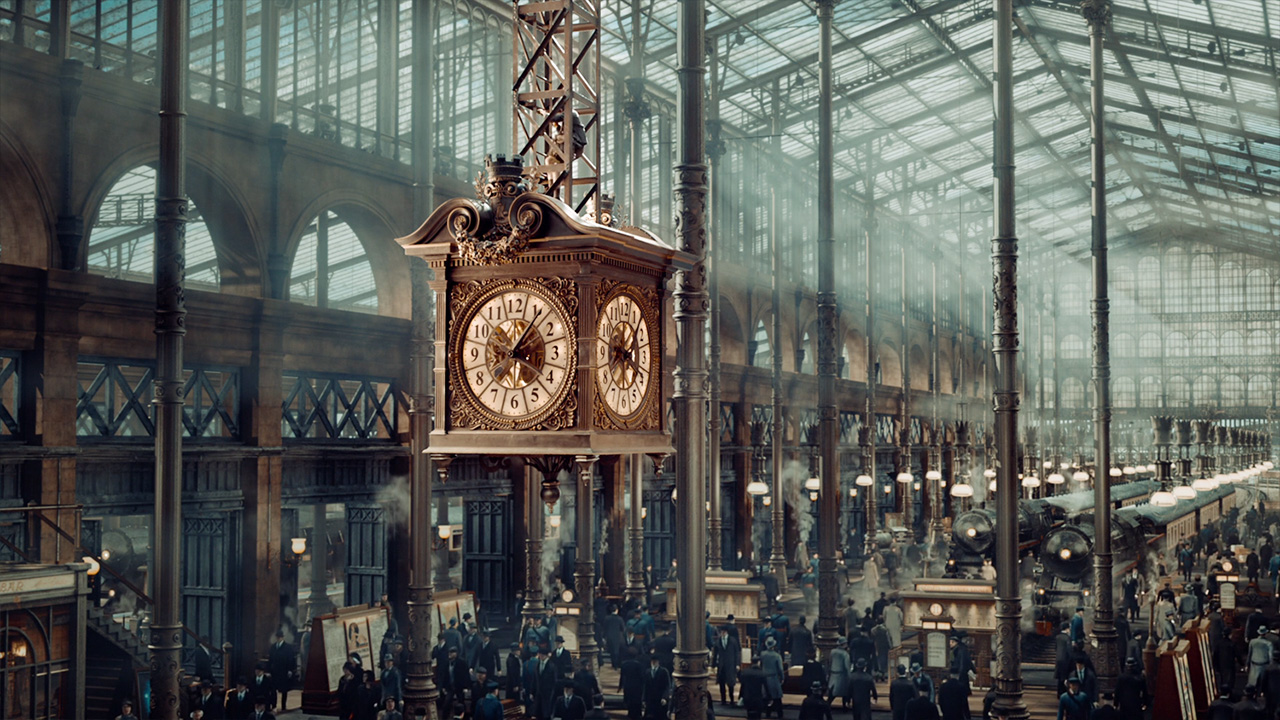 ดึงภาพเข้ามาใกล้เข้ามาเรื่อย ซึ่งหนังเรื่องนี้ก็เกิดที่นี่ สถานีรถไฟและหอนาฬิกาที่สถานีนั่นเอง