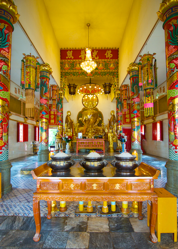 ภายในพระอุโบสถวัดอุภัยราชบำรุง (วัดญวน อนัมนิกาย วัดเก่าแก่สมัยรัชกาลที่ ๔) แถวตลาดน้อย