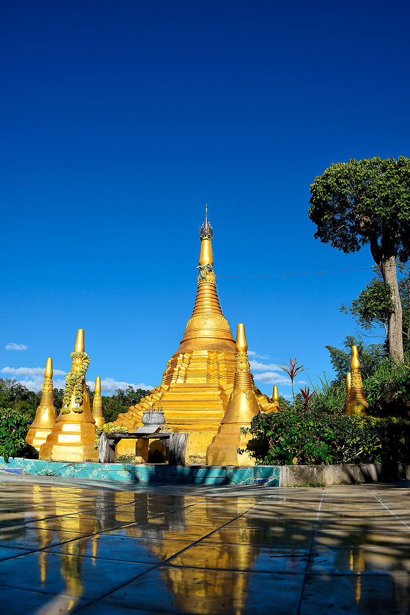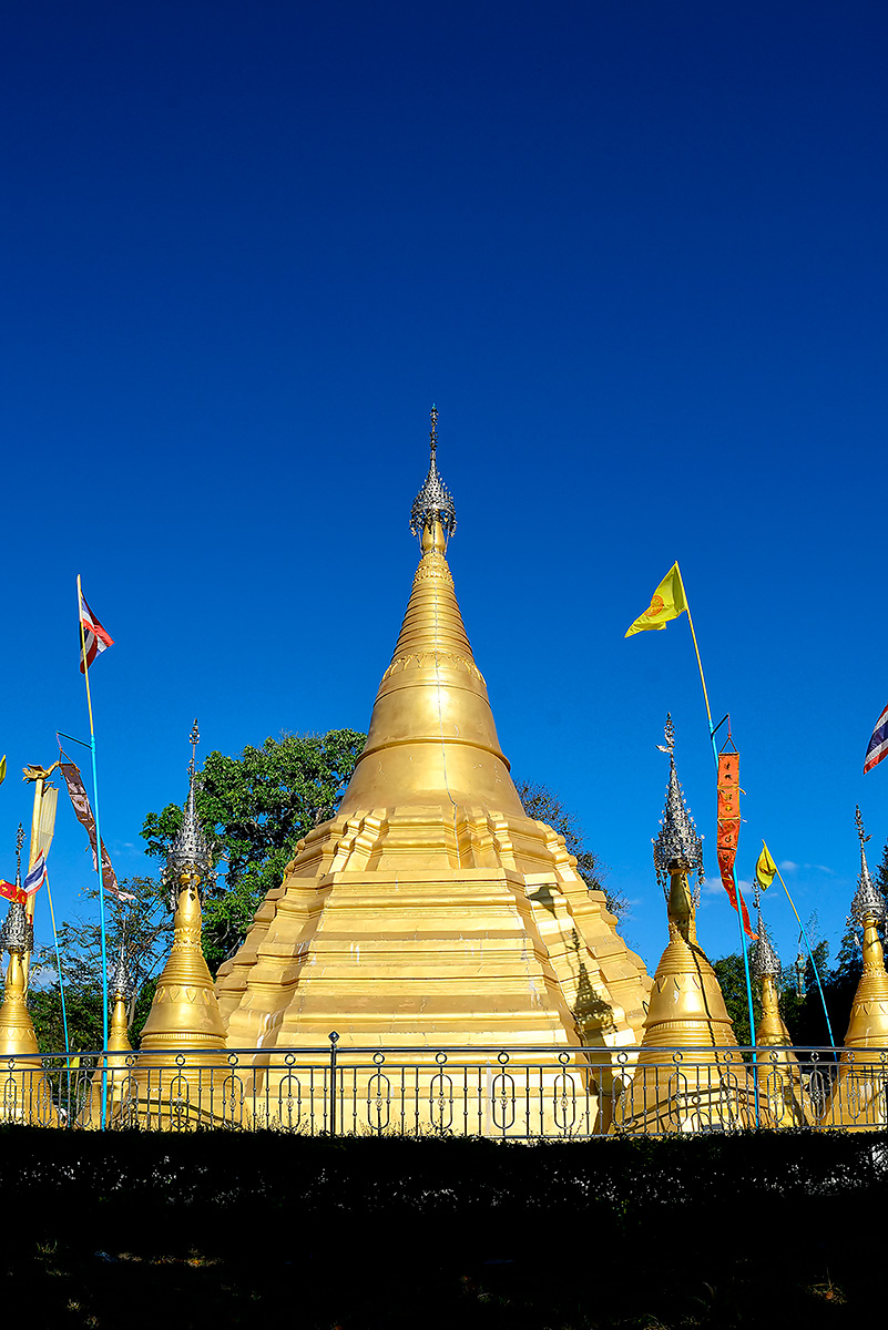พระเจดีย์ ชเวดากอง จำลองมา องค์นี้เป็นองค์ประธาน จริงแล้วต้องเรียกว่าสำนักสงฆ์ เพราะยังสร้างไม่เสร็จ เป็นสิ่งยึดเหนี่ยวของชุมขนเล็กๆตรงนี้