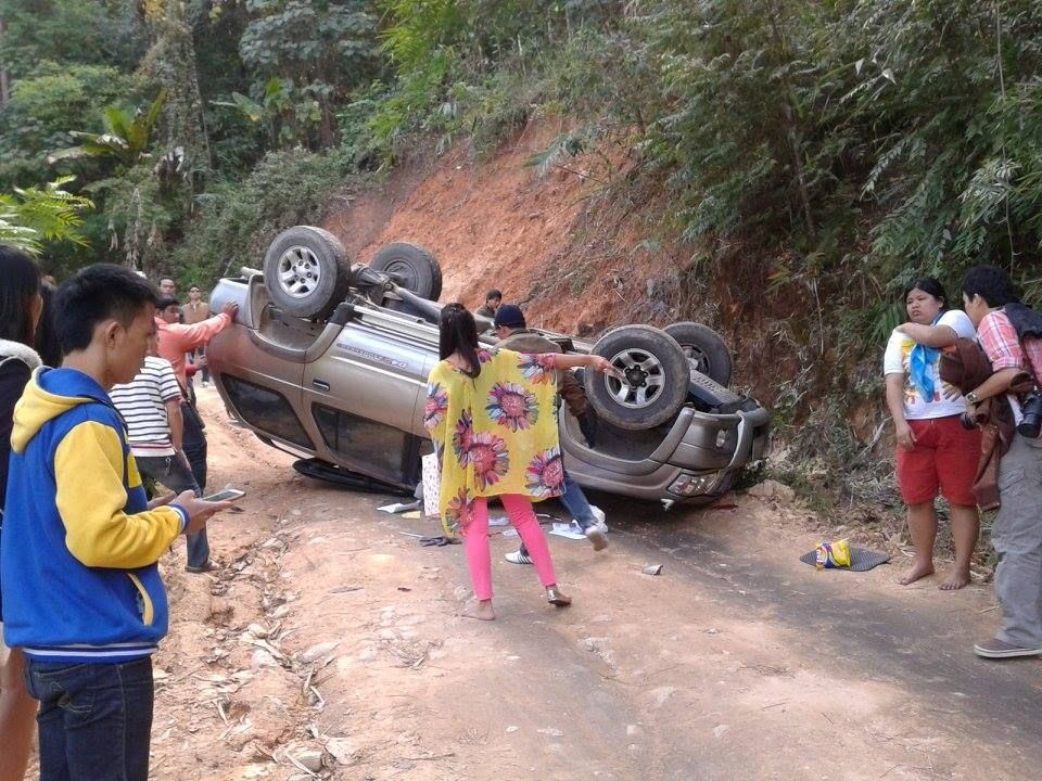 ช่วงลงเขาแล้ว ดีที่สติยังดี ใส่เกียร์ P แรงเฉื่อยยังมี จึงหักเข้าซ้ายหากำแพงเลยปีนหงายท้อง