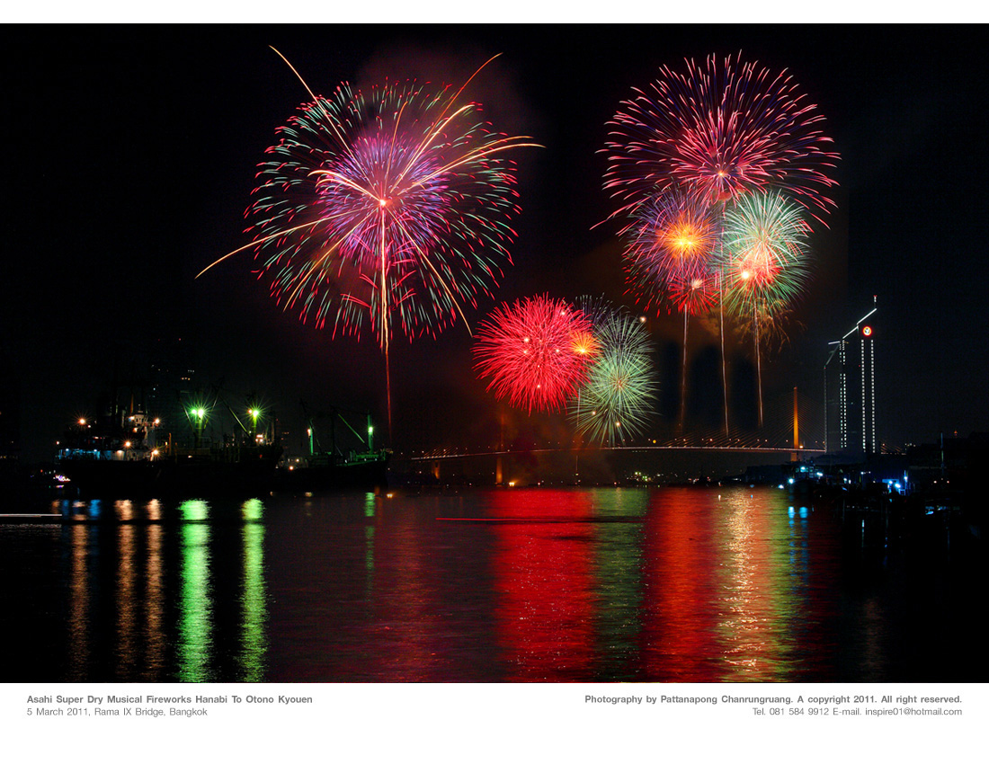 ส่วนพลุอาซาฮี ปีนี้ผมประทับใจ มุมนี้มากที่สุด ตั้งแต่ดูมาหลาย ๆ เว็บเลยครับ.....คราวต่อไปต้องคิดใหม่ ทำใหม่แล้ว