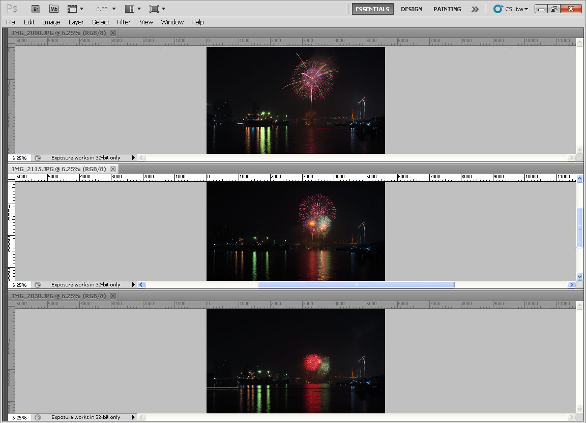 ที่ต้องทำแบบนี้เพื่อที่เวลานำ 3 ภาพมารวมกันแล้ว จะได้ไม่มีพลุดอกไหน สีพื้นลอยมาเป็นกรอบเด่นกว่าดอกอื่น