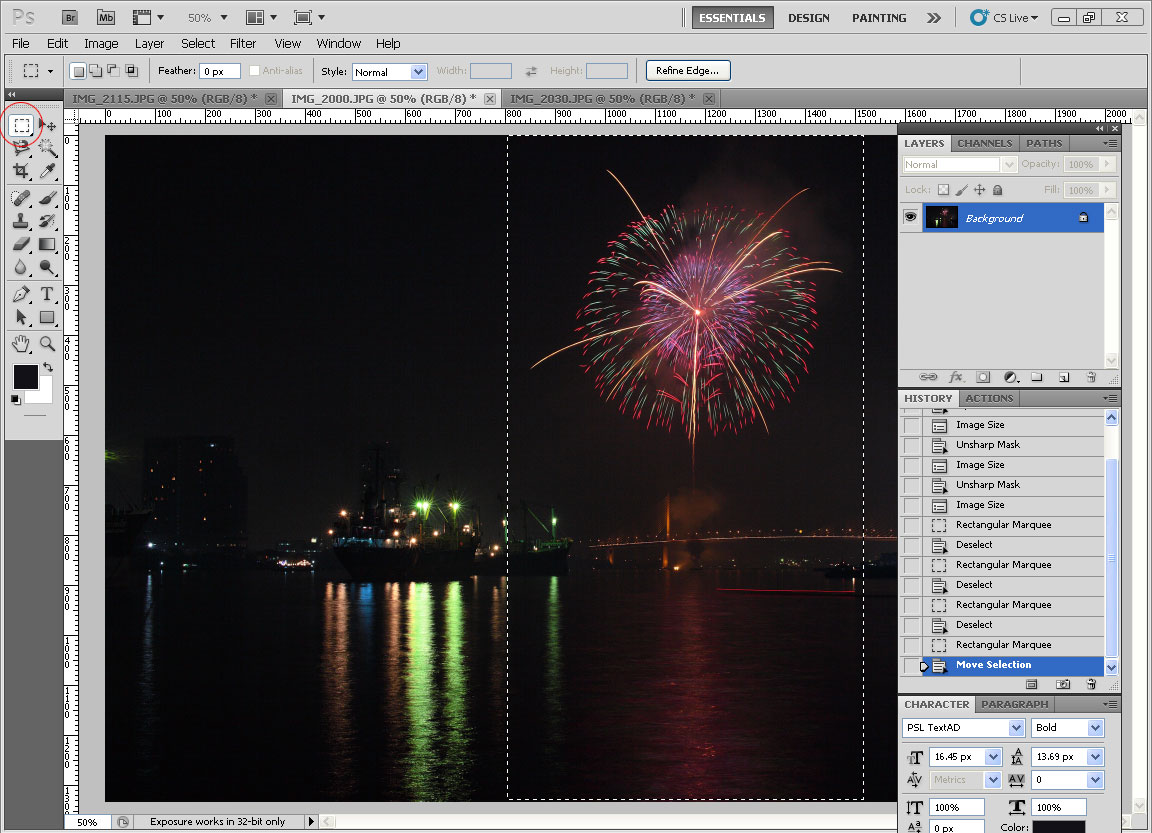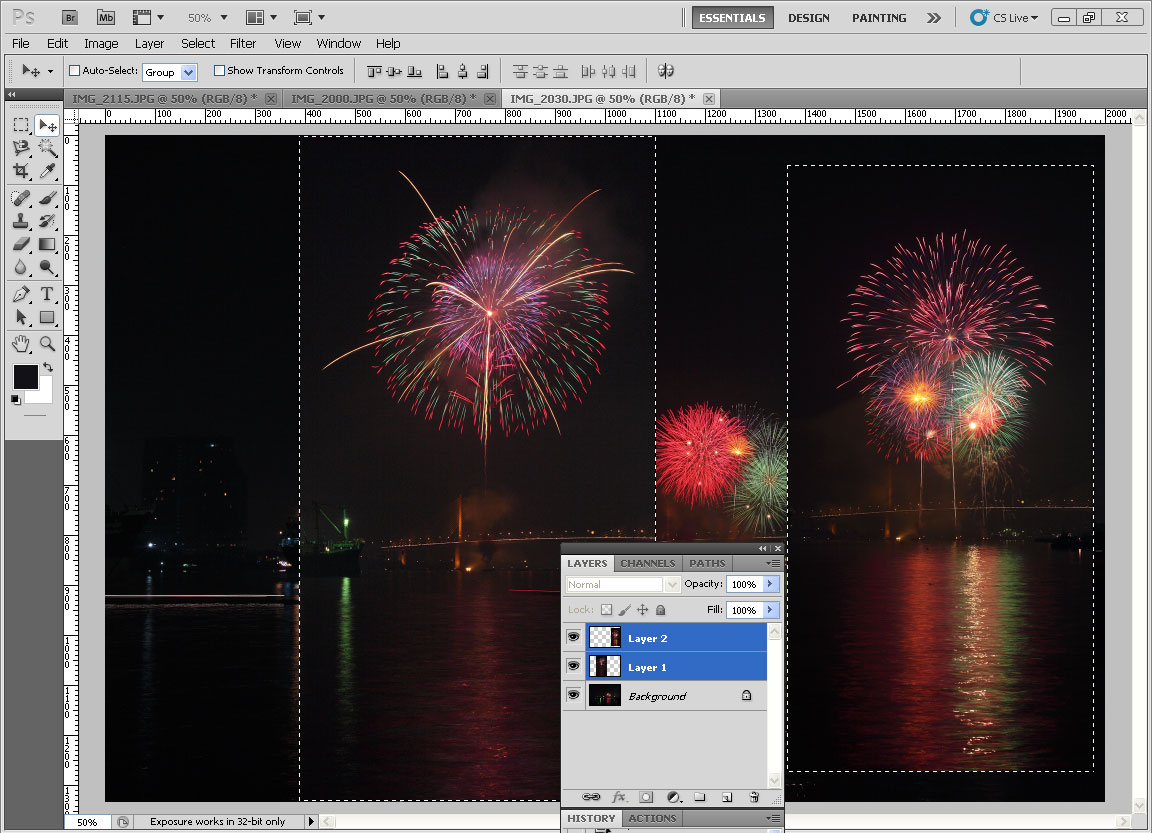 ขั้นที่ 6 เปลี่ยนพลุที่นำเข้ามาเพิ่ม ให้กลืนไปกับพื้นของภาพพลุหลัก