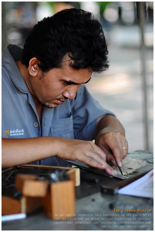 งานปั้น และดุนลายดีบุก ที่นี่ได้รับการถ่ายทอดฝีมือจากศิลปินวัยรุ่นอย่าง สุวิทย์ พรหมสุวรรณ์ และเพื่อนที่ผูกพันกับสถานที่แห่งนี้ถึง 9 ปีแล้วครับ ....น่าชื่นชมกับเด็กไทย ฝีมือดี สร้างงานดี ๆ คู่เมืองไทยครับ