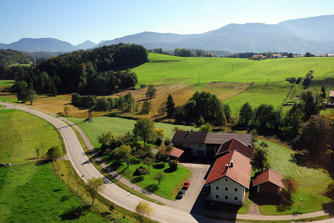 สองข้างทางเป็น ทุงหญ้า ฟาร์มเลี้ยงสัตว์ ภูเขา