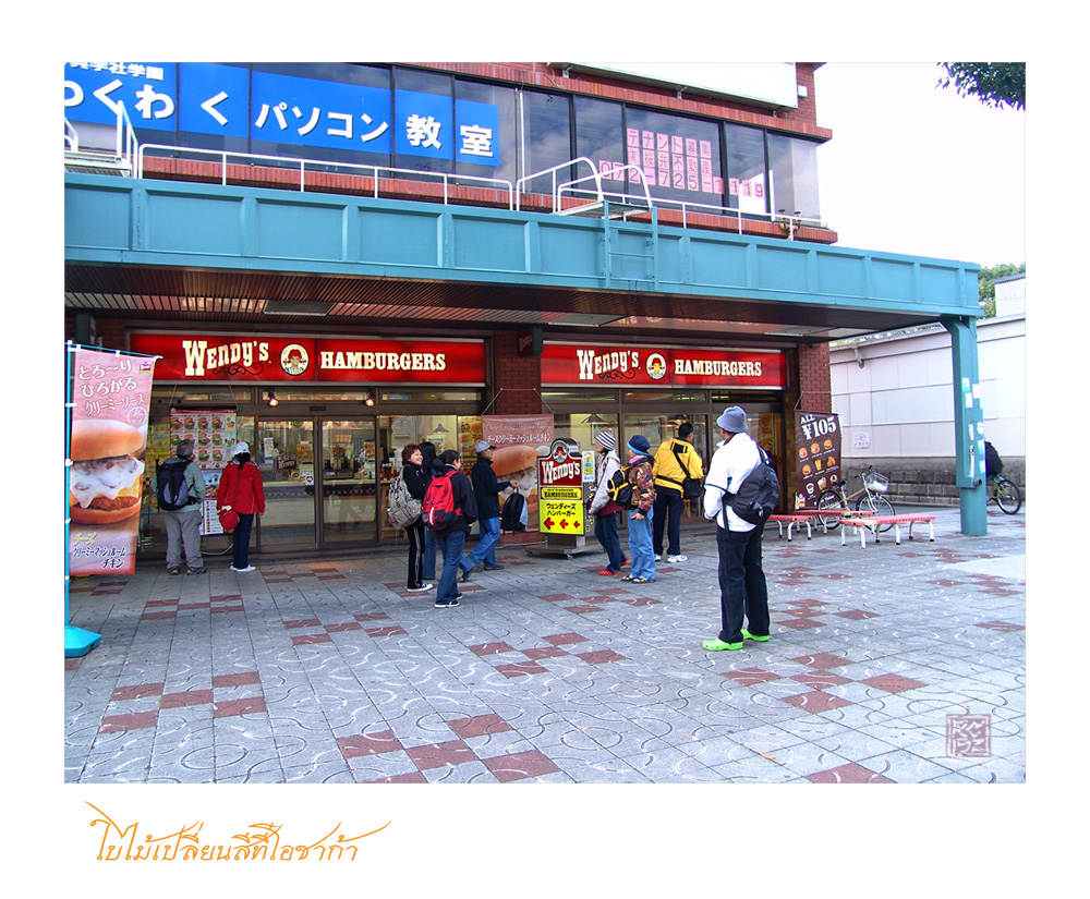 ที่กำลังจะไปคือน้ำตกมิโนะ อยู่ในจังหวัดโอซาก้า ต้องเิดินขึ้นเขาเลยแวะหาเสบียงก่อนเดินทาง ประมาณ3กม.คนนำทีมคือท่าน ณรงค์ศักดิ์ (ปิ๊ค)เสื้อเหลืองนั่นแหละครับ