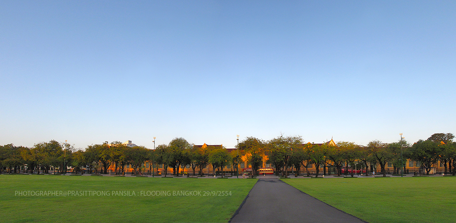 ยังเสียดายเล็กๆ ที่ไม่ได้ภาพ น้ำท่วมที่ถนนเรียบกำแพงวัดพระแก้วด้านตรงข้ามกระทรวมกลาโหม ...เพราะเค้ากั้นน้ำไม่ให้เข้า