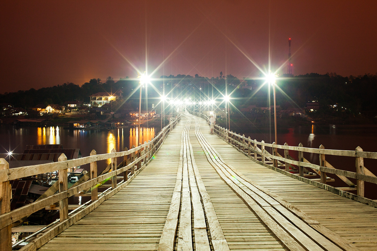 ลองแสงตอนเย็นๆกับสะพานมอญบ้างครับ